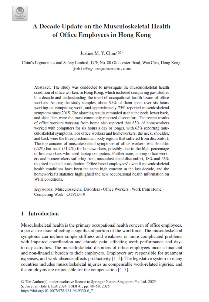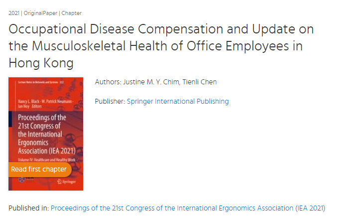 IEA 2021 Paper : Occupational Disease Compensation and Update on the Musculoskeletal Health of Office Employees in Hong Kong (Published by Chim, J. M.Y., & Chen, T. (2021, June))